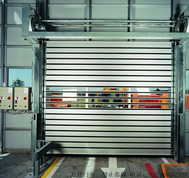 硬质金寨快速门具有可靠性、实用性、耐久性、易操作性以及低 廉的维修费用和 低噪 音等性能。在工业应用中,每年正常无故障动作可达15万次以上。门板条为双层结构,可以抵抗强风和暴风雨及大雪的侵袭。根据需要,还可以将隔热铝制板条和透明的板条组合安装起来。板条在卷起时相互无接触,这样可以保持板条常年无变形、无磨损。另外板条之间也没有直接连接, 它们的两端是和可以卷绕的钢带螺接在一起,各板条之间用密封胶条连接,这样既可以节省空间,又可以保证门帘不变形,而且板条的更换也非常简单、快捷。